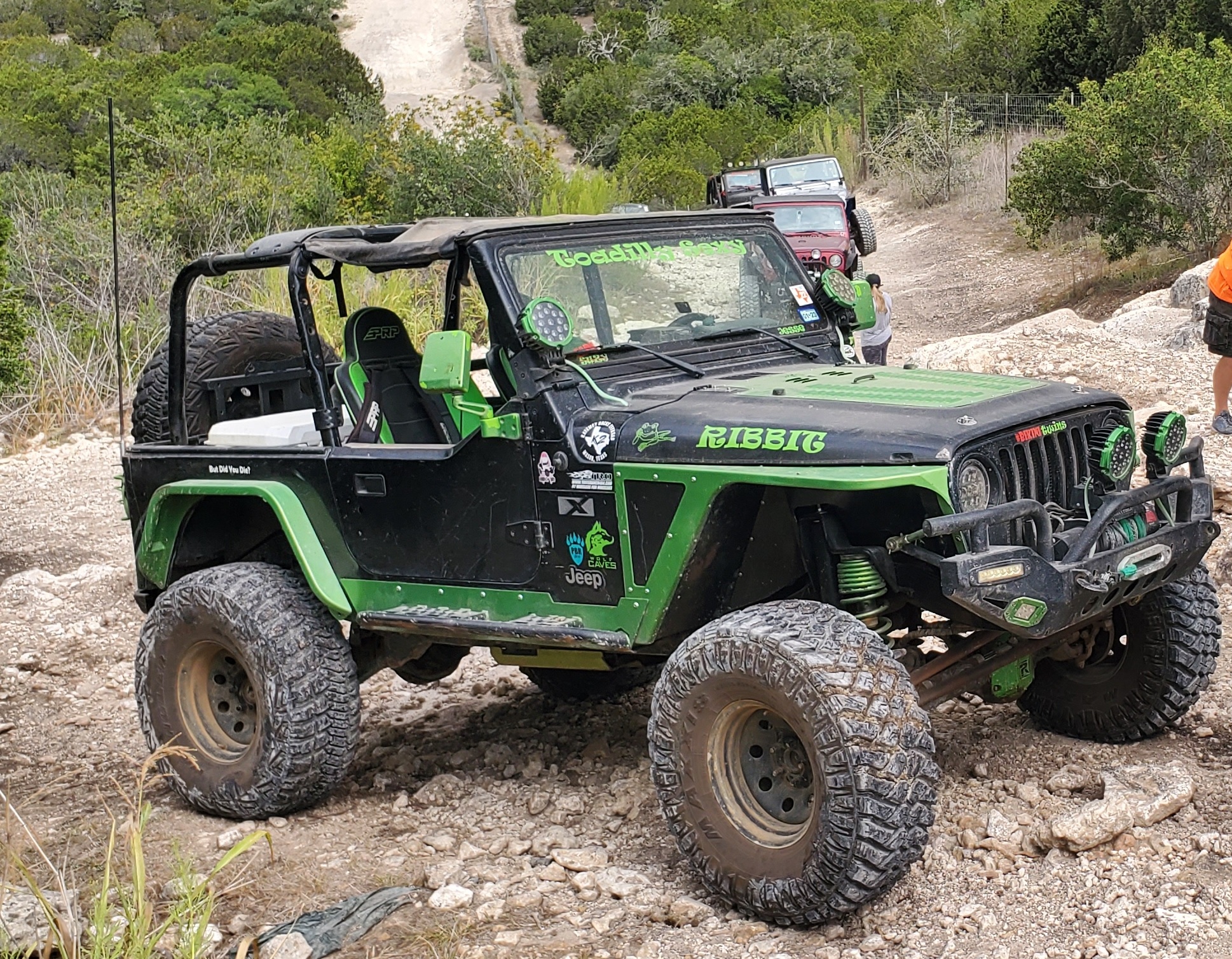 With the acquisition of Ribbit in 2018, a 2004 Jeep Wrangler TJ, Jesse has enjoyed going to several off road parks in the Texas and Oklahoma areas. Starting with a clean canvas, he has installed many upgrades such as lockers, custom steering components, under frame armor, and a custom built Ford 8.8 rear axle. For a short wheelbase on 35" tires, there's not too many places Ribbit can't go. There are several videos on his YouTube channel showing him having fun on the rocks.